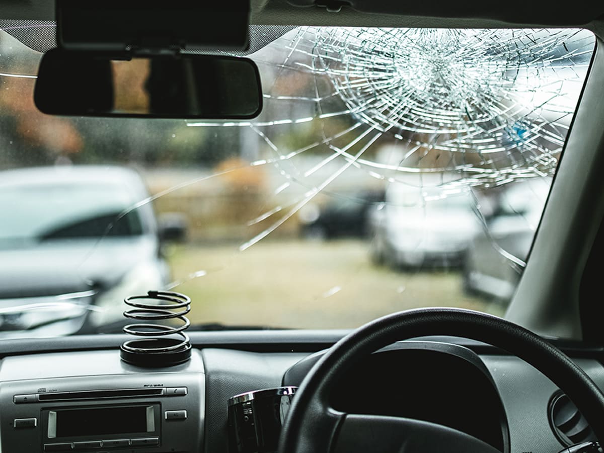 フロントガラスが割れたままの走行は、前方の視界を著しく損なう恐れがあります。