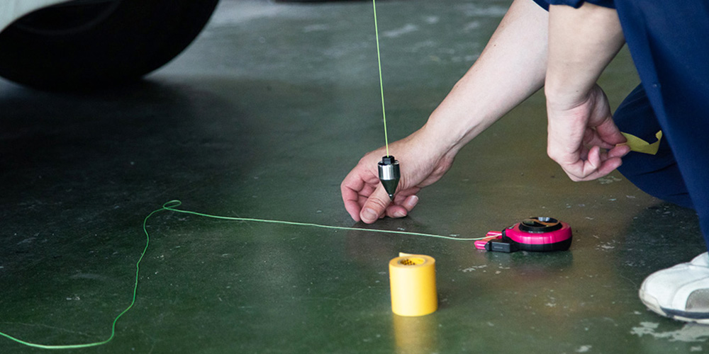 お客様の工場(平坦な場所が無い場合、弊社まで引き取りを行います)などで車両の水平や中心を取る作業を行います。